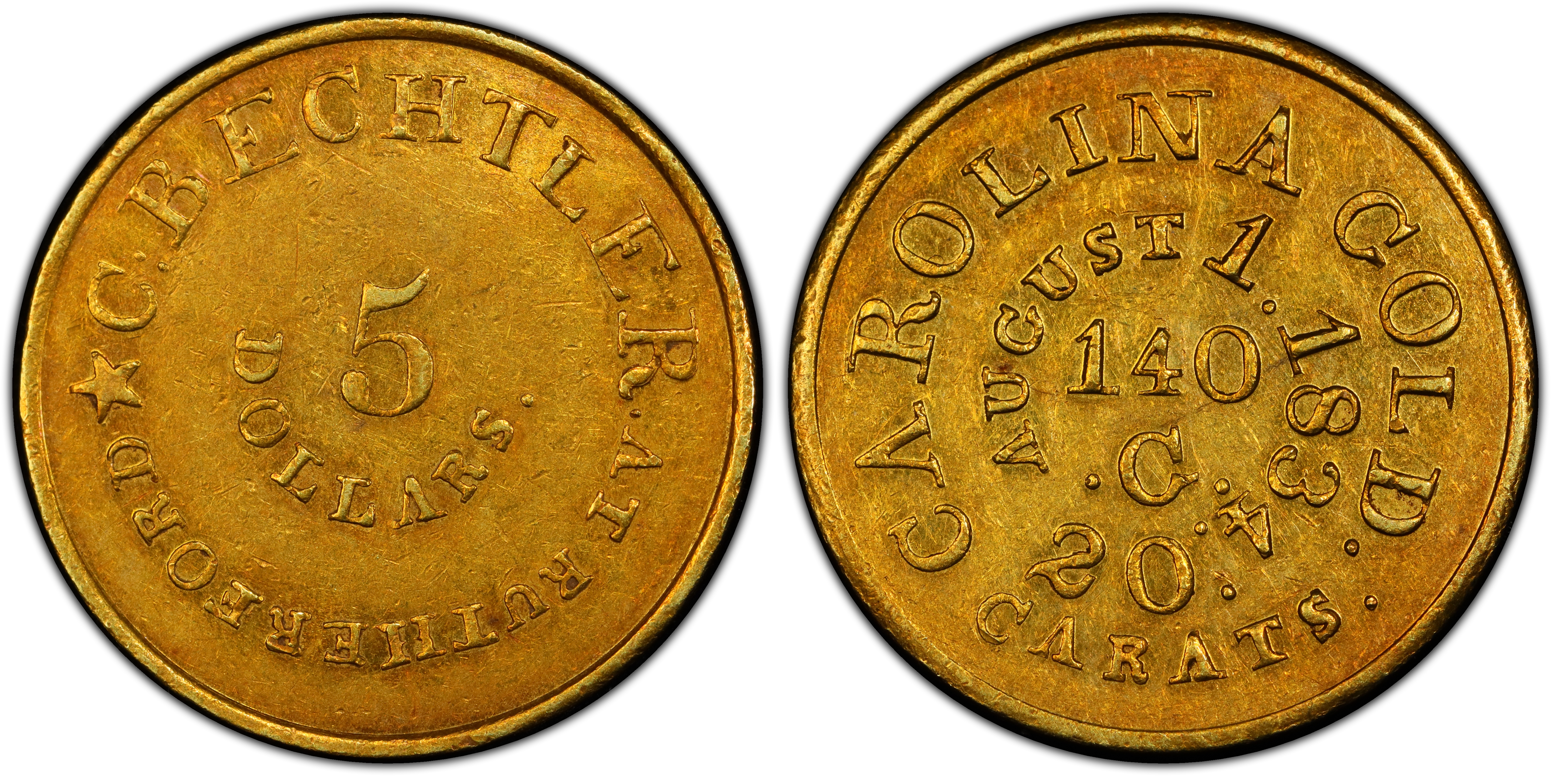 Reverse InscriptionC. BECHTLER . AT RUTHERFORD . / 5 / DOLLARS