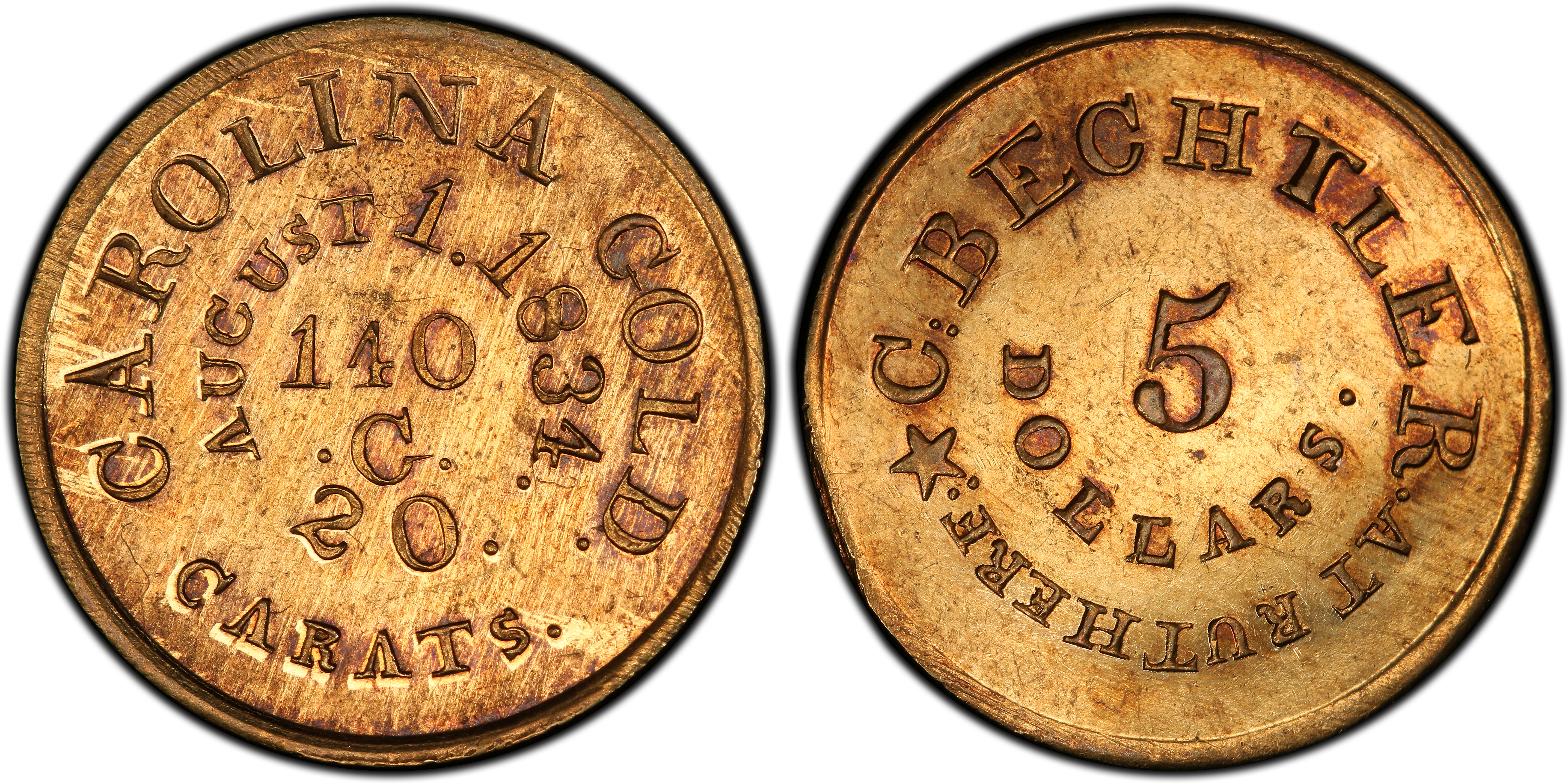 Reverse Inscription*C:BECHTLER. AT RUTHERF: / 5 DOLLARS.