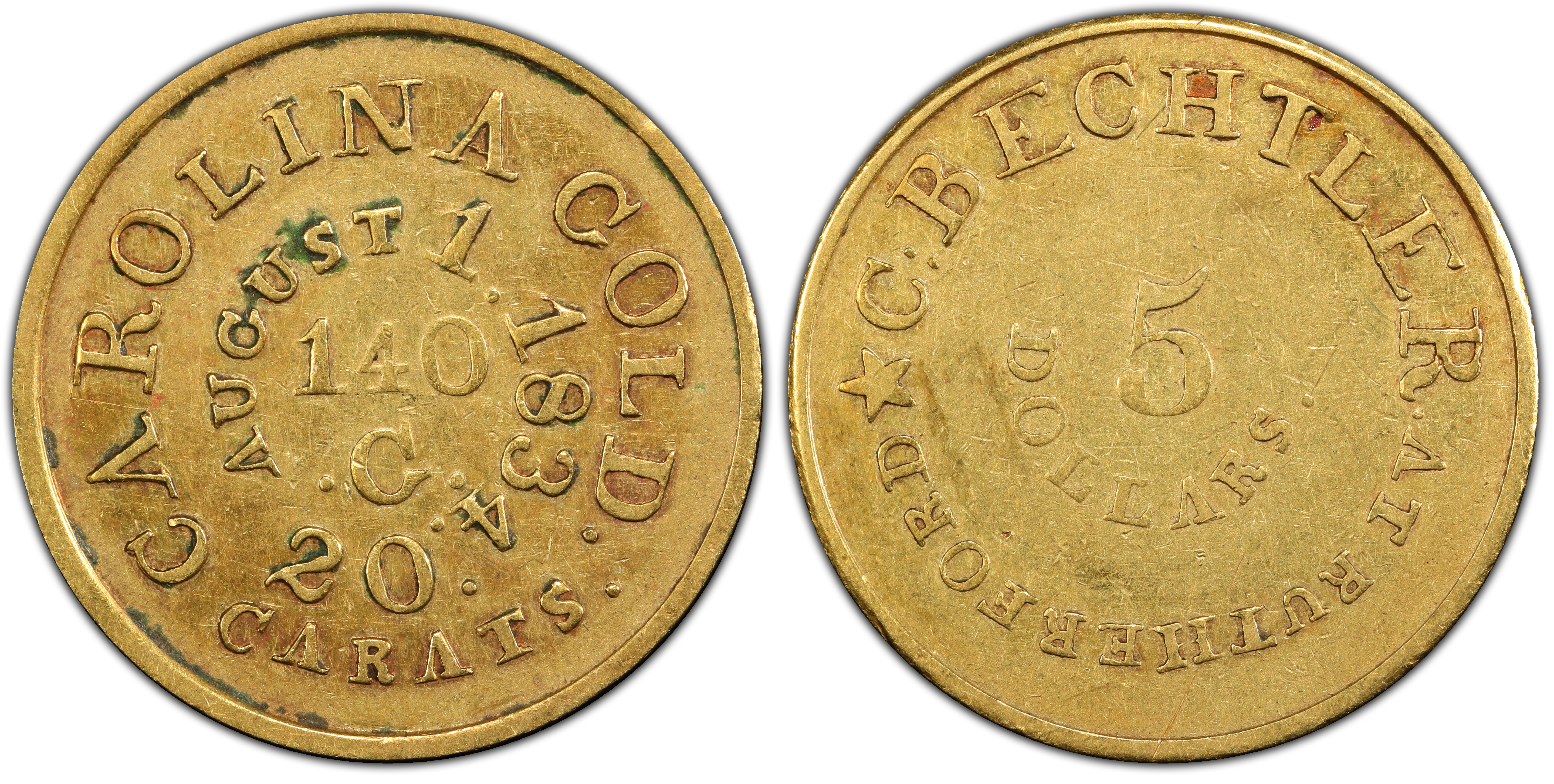 Reverse Inscription* C:BECHTLER. AT RUTHERFORD around 5 DOLLARS.